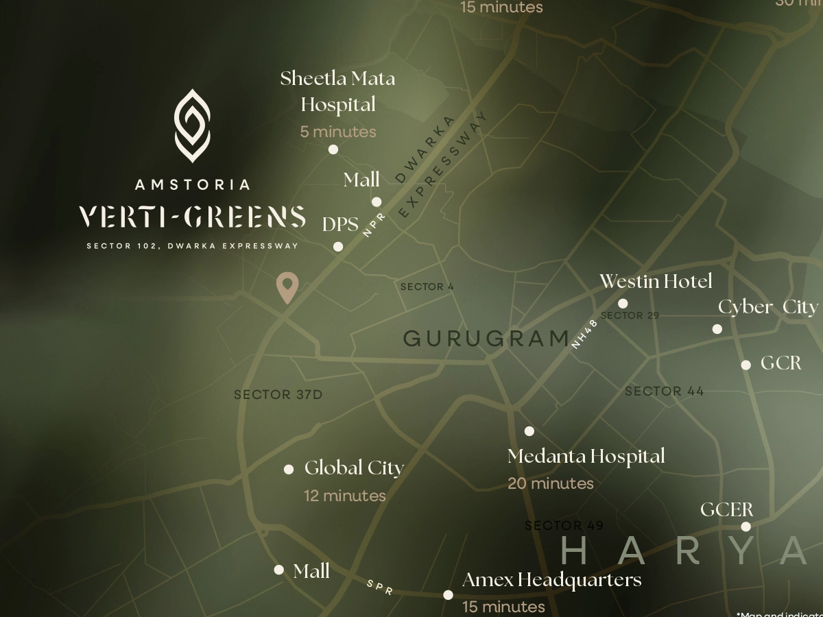 BPTP Amstoria Verti-Greens stands as a landmark of privilege in the elite Sector 102, Gurugram, right on the Dwarka Expressway. With swift access to both Delhi and Gurugram, Amstoria Verti-Green's strategic location and proximity to prominent areas and facilities are the perfect examples of how connectivity meets exclusivity.